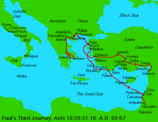 this city again on his third missionary tour (Acts 18:23).